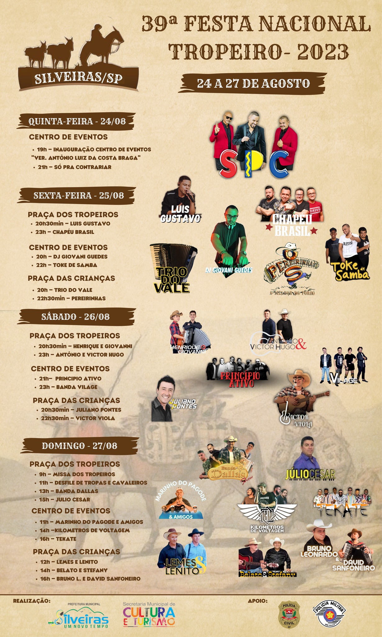 A 39ª edição da Festa Nacional do Tropeiro acontece em Silveiras-SP, entre os dias 24 e 27 de agosto, com grande programação de eventos gratuitos e com classificação livre para todas as idades.
